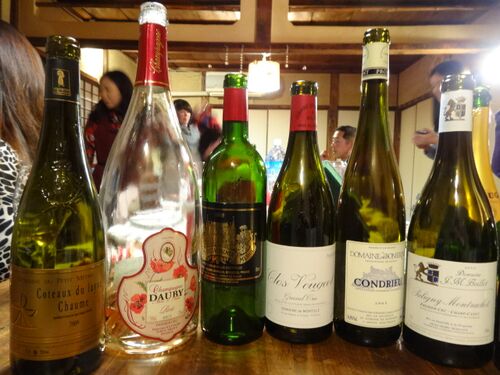 12月5日(土)は、名古屋・新栄にある「まんもちゃん」で持ち込みワイン会が開催されたので、 参加してきました。 参加者が、一人1本のワインを用意するはずが・・・日本酒と焼酎も入っています。 料理は、いつも素敵な「まんもちゃん」コースです。 鶏の…